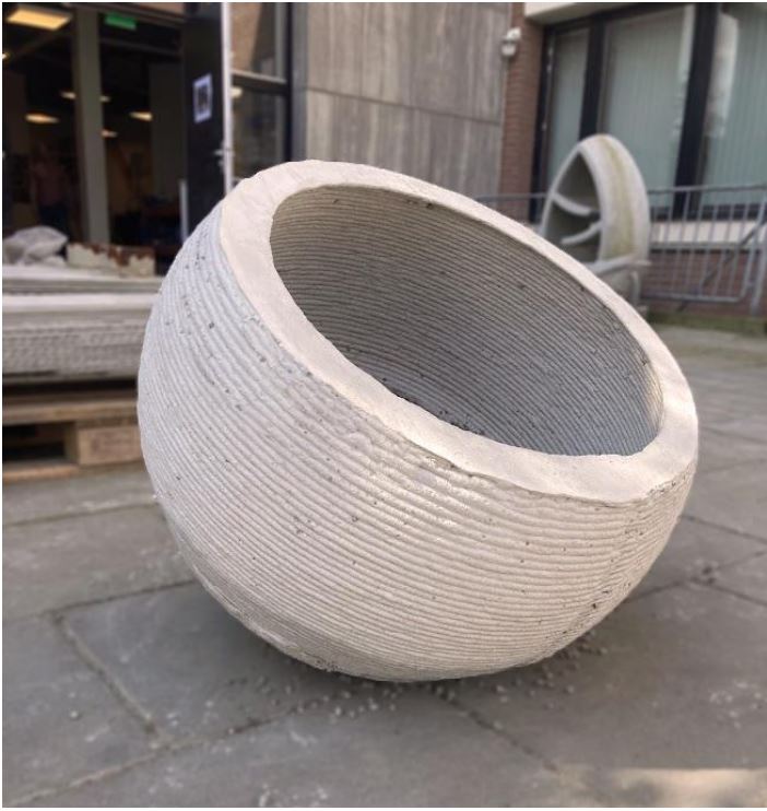 Creastone produces outdoor ornaments, such as a water fountain sphere. As a case study, copies of one or a few products will be made by means of 3D printing. The advantage of this approach is that product properties such as strength, water permeability, bearing capacity, density, and environmental costs can be compared with the performance of the existing product produced by casting in a mold.